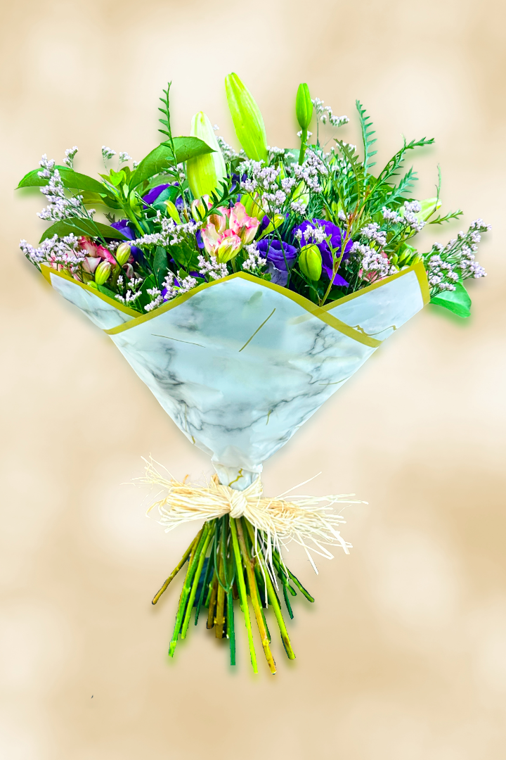 Wrapped in a modern marble-style finish and tied with a rustic touch, it’s the perfect gift for birthdays, celebrations, or simply to brighten someone’s day.